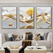 Add a touch of luxury to your home with this 3-piece Nordic abstract landscape wall art. Featuring elegant gold deer and ribbon-inspired designs, these modern canvas prints bring a stylish and sophisticated vibe to any living room, bedroom, or office. High-quality prints ensure vibrant colors and durability, making them a perfect statement piece for contemporary décor.