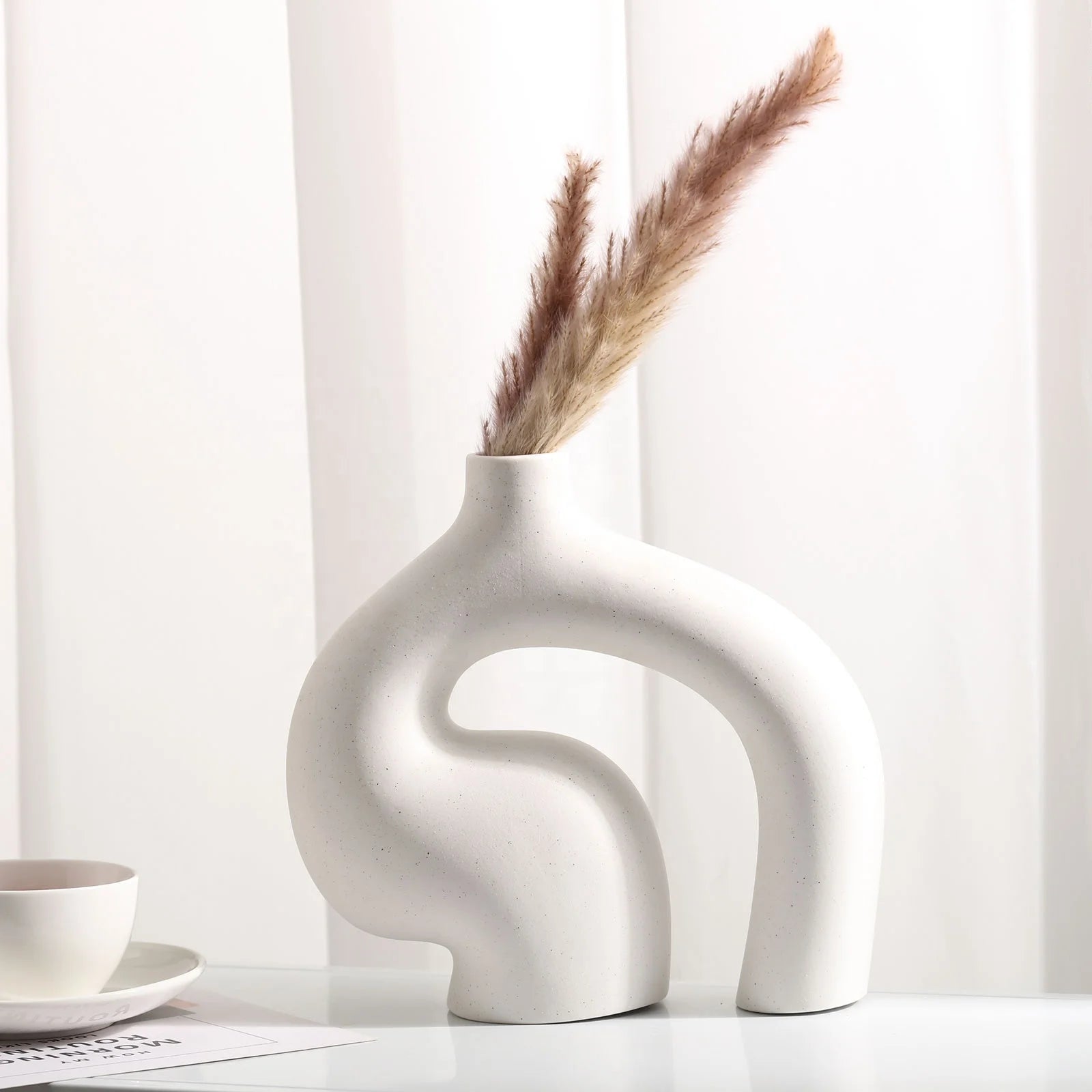 Enhance your space with this elegant abstract hollow ceramic vase. Perfect for offices, desktops, and home décor, its unique design adds a modern and artistic touch to any room. Whether used for flowers or as a standalone décor piece, this stylish vase brings sophistication and charm to your space.